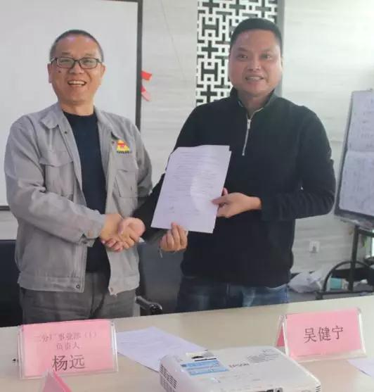 總經理吳健寧與事業二部負責人楊遠簽暑協議