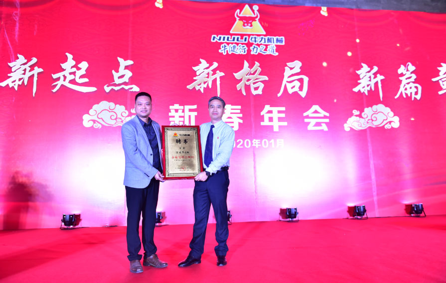副董事長胡鏡明代表牛力機械向2019年5位優秀供應商代表頒發優秀供應商牌匾。