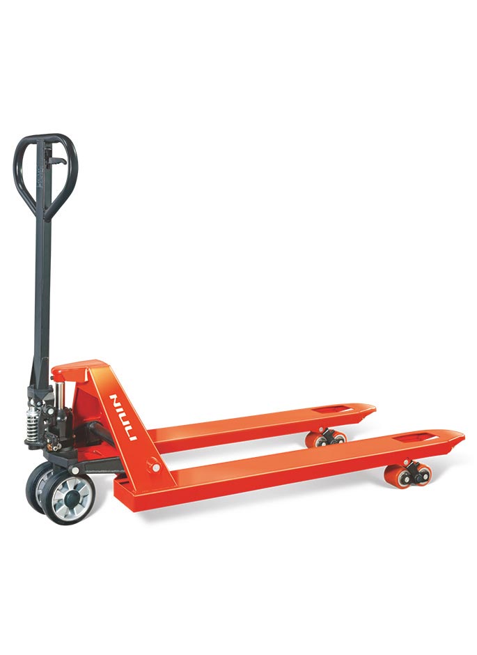 手動液壓搬運車是簡便、有效、常見的裝卸、搬運工具,是車間貨物搬運的好幫手。DF型搬運車采用高強度焊接油泵,配置安全閥,油泵殼座為機械、液壓集成一體化,防漏可靠,免維護、免裝拆,轉彎半徑小。