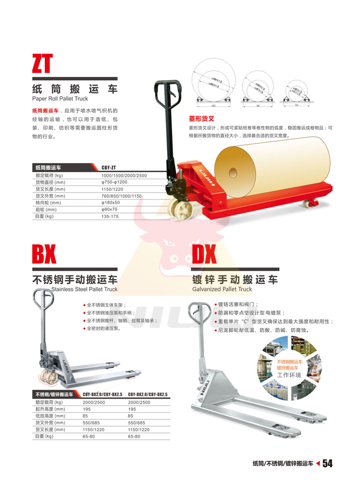鍍鋅搬運車油缸采用防漏設(shè)計,車架、手把、油缸等裸露在外部的零件全部經(jīng)過鍍鋅處理,配置不銹鋼軸承,耐磨尼龍輪,抗腐能力強。適用于冷庫及潔凈度、抗腐蝕性要求比較高的場所。