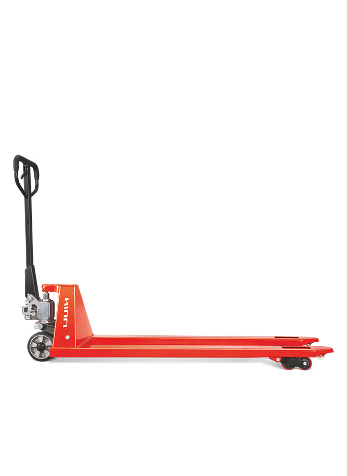 優質鋼板,精心打造;適用于體積或者托盤較大的貨物搬運。內部溢流閥提供過載保護,有效避免超載使用,降低維修費用。承載能力強,自潤滑軸承確保搬運車有更長的使用壽命。