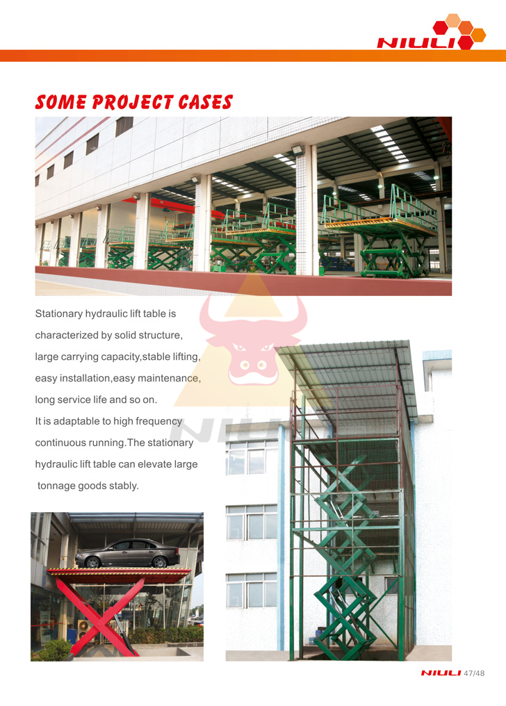 Stationary hydraulic lift table is characterized by solid structure,large carrying capacity,stable lifting,easy